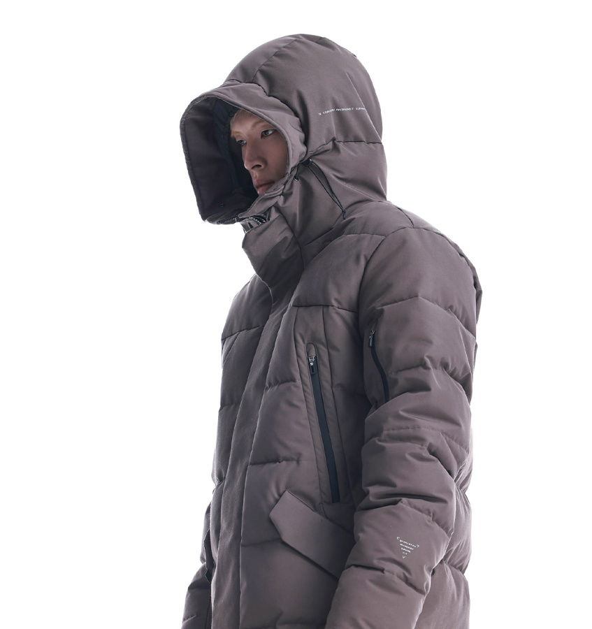 Удлинённый пуховик Krakatau STROFO из функциональной водостойкой ткани. Утеплитель сочетает натуральный пух и синтетическое волокно — лёгкий, тёплый, устойчивый к влаге и сохраняет форму. Капюшон с дополнительной защитой лба, карманы с двойными клапанами, смарт-карман на рукаве и встроенные стропы для ношения за плечами — каждый элемент рассчитан на надёжность, посадку и удобство в движении.