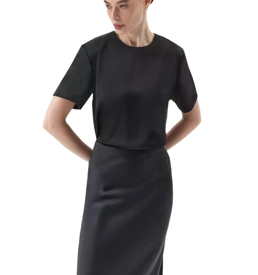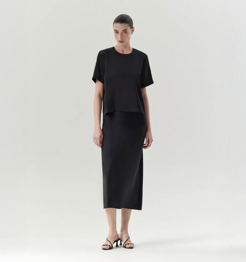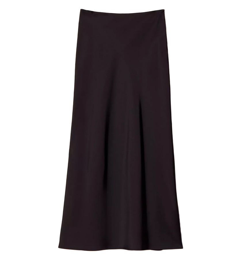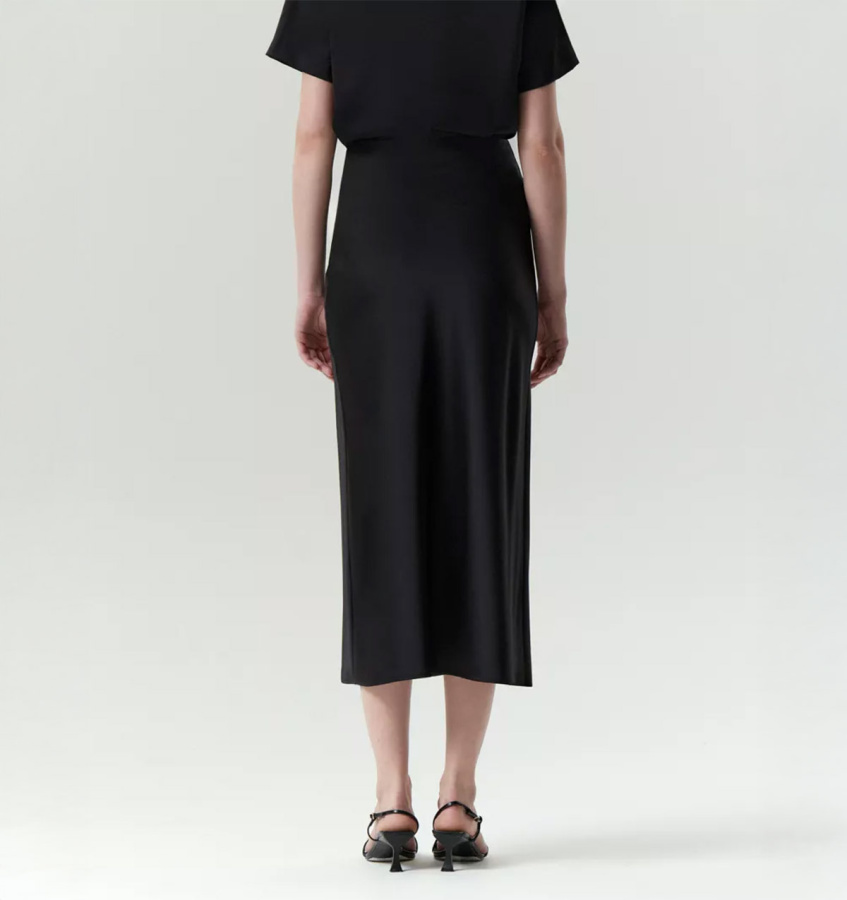 Универсальная чёрная юбка А-силуэта в длине миди поддержит образ как на каждый день, так и на особый случай. Модель имеет высокую посадку. Выполнена из струящегося материала с содержанием вискозы, без подкладки. Застёгивается на молнию сбоку.