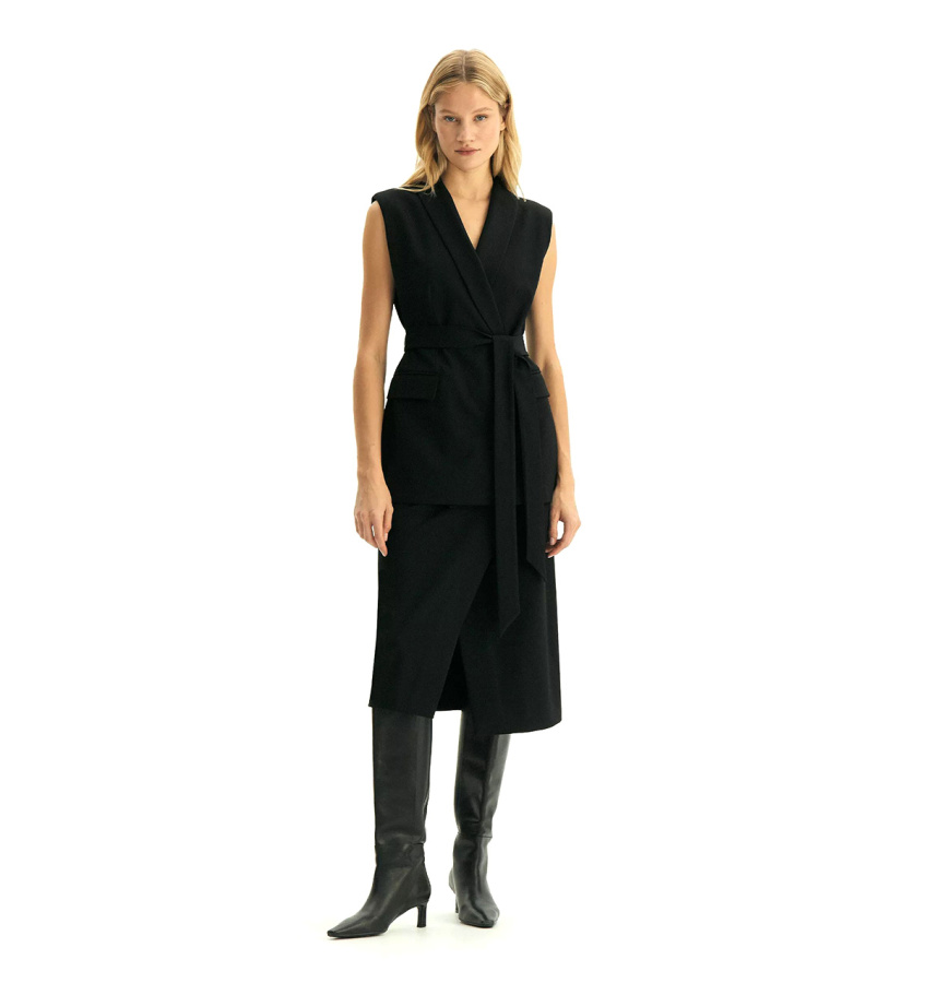 Чёрная юбка для образов к любому случаю. Приталенный силуэт элегантно подчёркивает фигуру, ткань с высоким содержанием вискозы, приятна на ощупь. Фальш-запах добавляет оригинальности классическому крою. Юбка легко комбинируется с пиджаком из той же коллекции, создавая гармоничный и продуманный образ. Модное решение для деловых образов и повседневных стилизаций. Выполнена из приятной костюмной ткани, на подкладке с вискозой. Юбка может стать основой капсулы с брюками и жакетом monk.