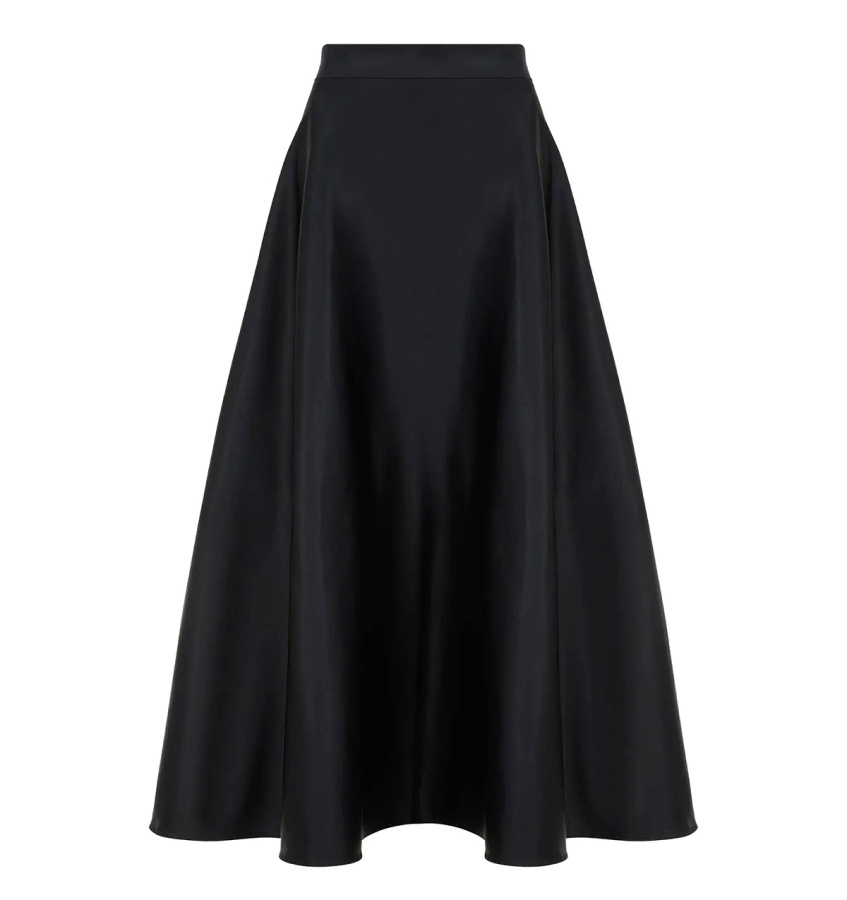 Чёрная длинная юбка-полусолнце с высокой посадкой станет основой множества нарядных образов.