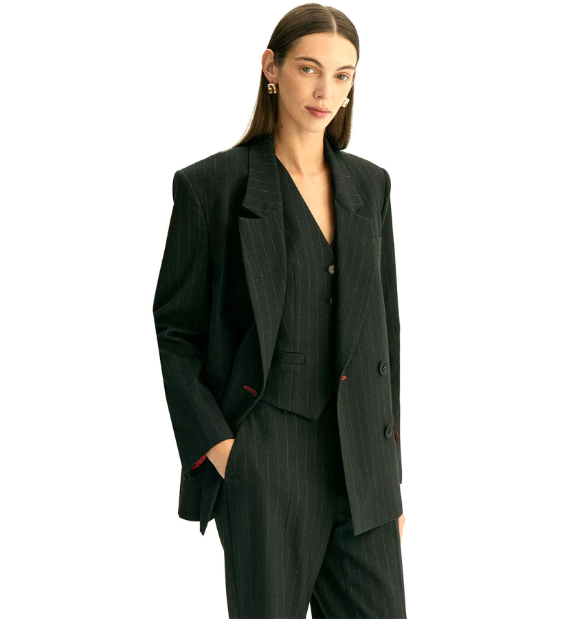 Жилет в полоску для стильных деловых и кэжуальных образов.