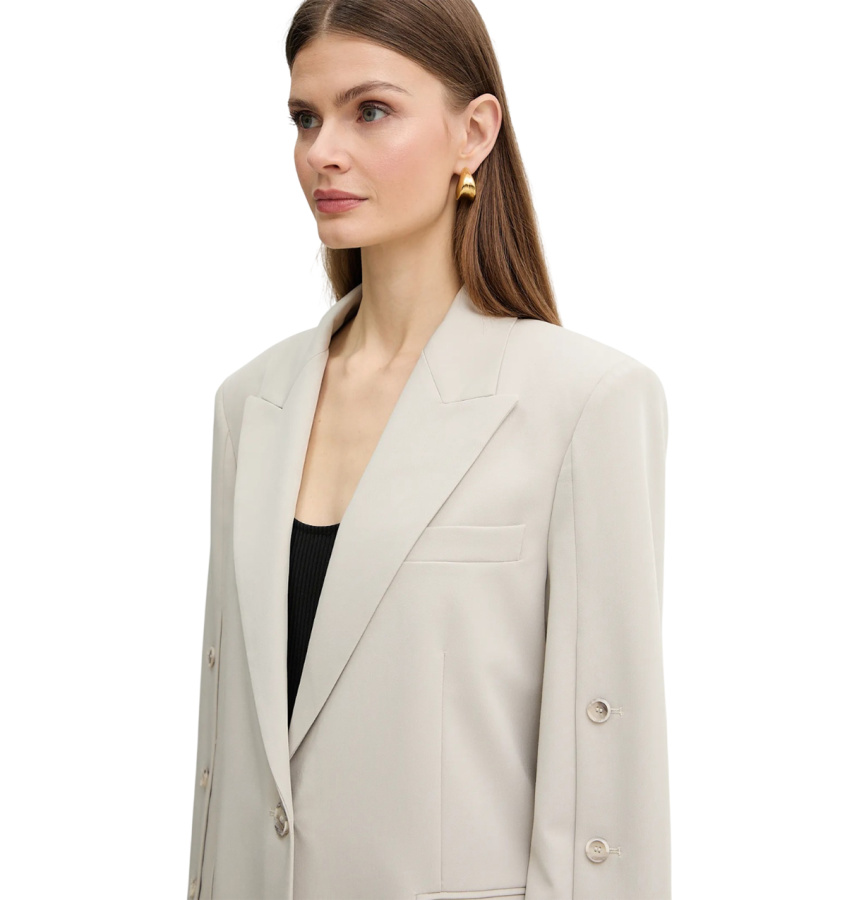 | Материал | 72% полиэстер, 23% вискоза, 5% эластан; подкладка: 67% шелк ацетатный, 33% полиэстер |