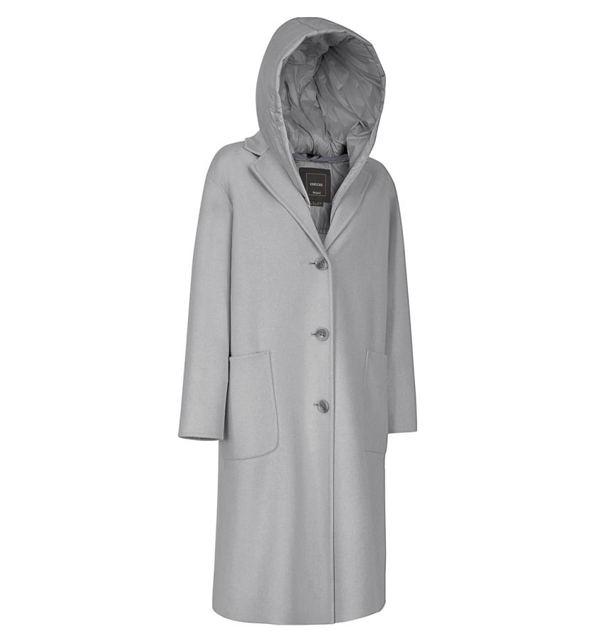 Удлинённое пальто Geox современного дизайна с воротником-лацканами, элегантным силуэтом и ветрозащитной отделкой идеально подходит для осеннего сезона. Эта стильная модель выполнена из изысканной шерстяной ткани светло-бежевого цвета и дополнена удобным и практичным съёмным капюшоном с утеплителем. Модель Rawelle идеально дополнит повседневный городской образ и дополнена утеплителем EcologicWARM, обеспечивающим максимальный комфорт и воздухопроницаемость.