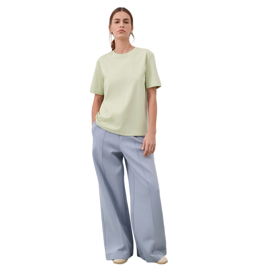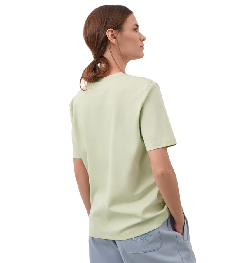 Базовая футболка ментолового оттенка с вышитым символом бренда. Универсальная модель прямого силуэта с круглым вырезом выполнена из высококачественного хлопка.