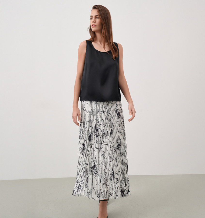 Лаконичный топ глубокого черного цвета. Модель лаконичного кроя выполнена из высококачественного шелка, что обеспечивает идеальную посадку и комфорт.