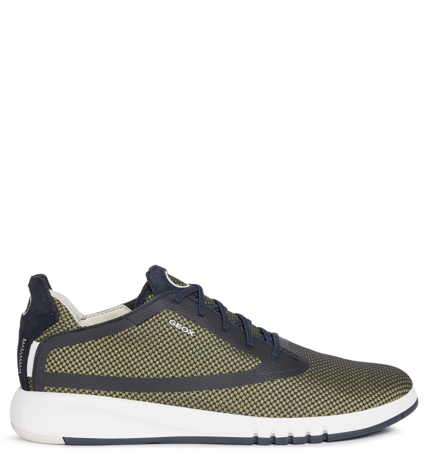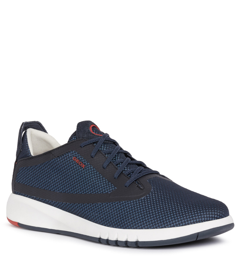 Дышащие мужские сникеры Aerantis — олицетворение новейших технологий Geox. Инновационный современный дизайн с экологическим подходом идеально дополняет повседневную одежду для работы или досуга. Модель отличается шнуровкой с эластичными шнурками, которая позволяет легко надевать и снимать обувь. Используется сетчатая ткань из переработанной полиэстеровой пряжи, целиком полученной из пластиковых бутылок. Модель Aerantis подтверждает приверженность Geox защите окружающей среды. Исключительно удобная модель Aerantis сочетает в себе легкость, гибкость и превосходные амортизационные свойства благодаря промежуточной подошве из материала EVA, которая поглощает ударную нагрузку. Резиновый протектор с круглыми вставками обеспечивает оптимальное сцепление с любой поверхностью. Модель Aerantis представляет собой сочетание технологий и инновационных решений, придающих обуви дышащие свойства. Революционная система Ventilaction System активируется во время движения, повышая внутреннюю циркуляцию воздуха и обеспечивая максимальную воздухопроницаемость вокруг стопы. Подкладка, изготовленная по технологии Inner Breathing System, обладает оптимальными дышащими свойствами для терморегуляции стопы, а технология Net Breathing System обеспечивает циркуляцию воздуха благодаря перфорированной воздухопроницаемой подошве.