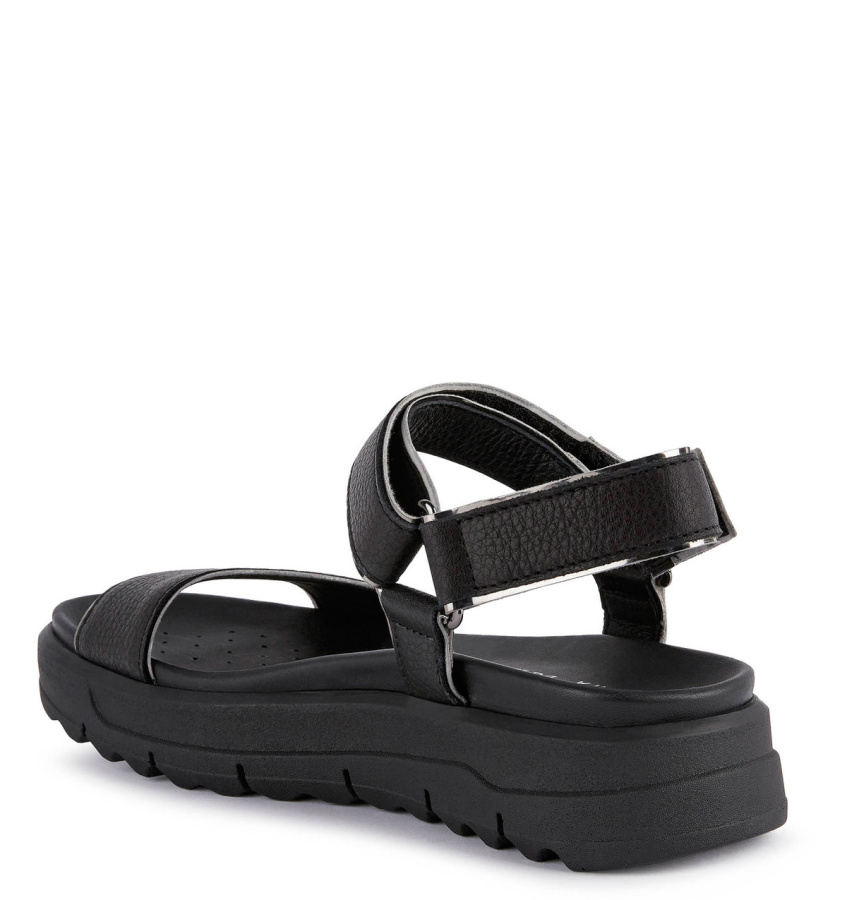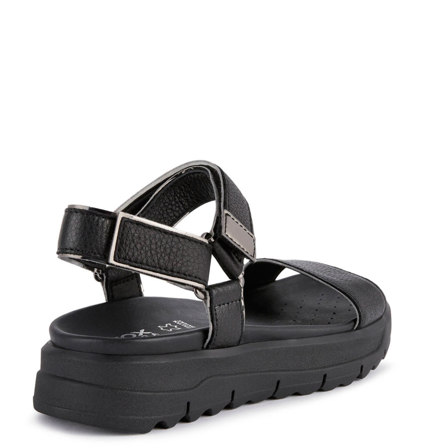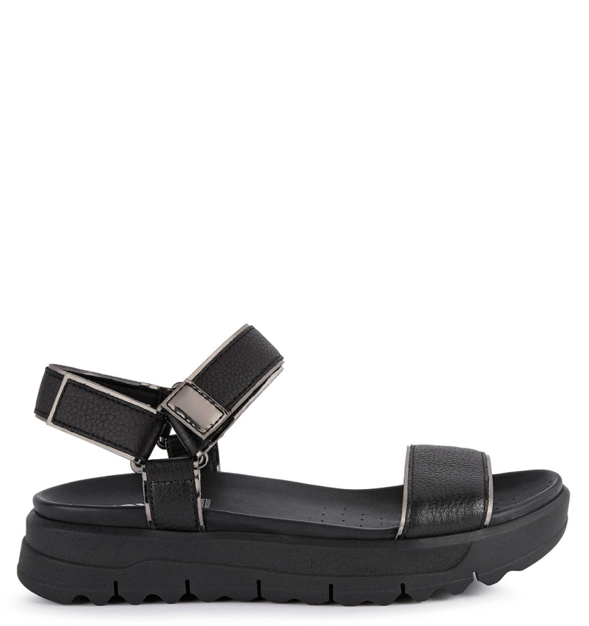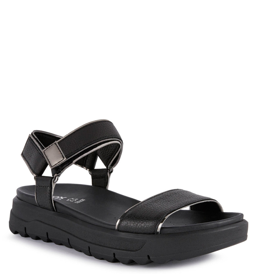 Непревзойденный комфорт и амортизация отличают женские босоножки GEOX гибридного дизайна в современном стиле, идеально подходящие для повседневной носки. Модель выполнена из фактурной кожи и материала под металлизированную кожу. Внесет нотку актуальности в неформальные городские образы.